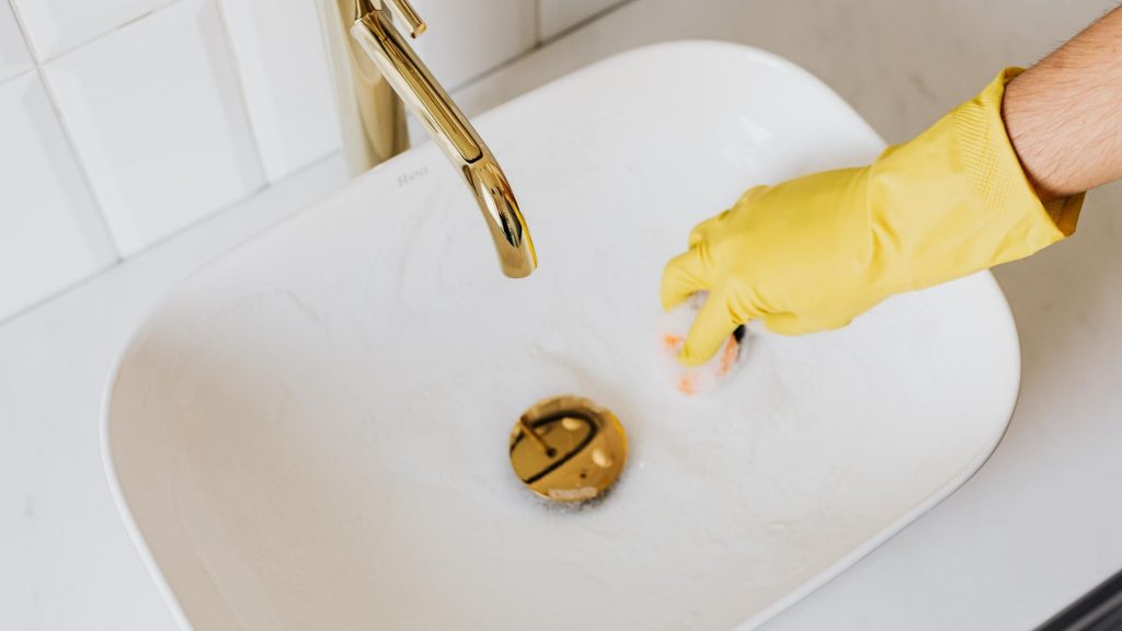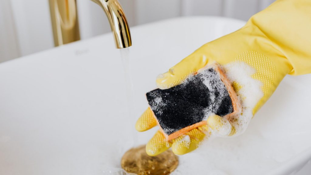 お風呂場や洗面台などの掃除をするとき「Bathroom用」「Limescale用」洗剤をスポンジ使って掃除して洗剤を水で流しますよね。